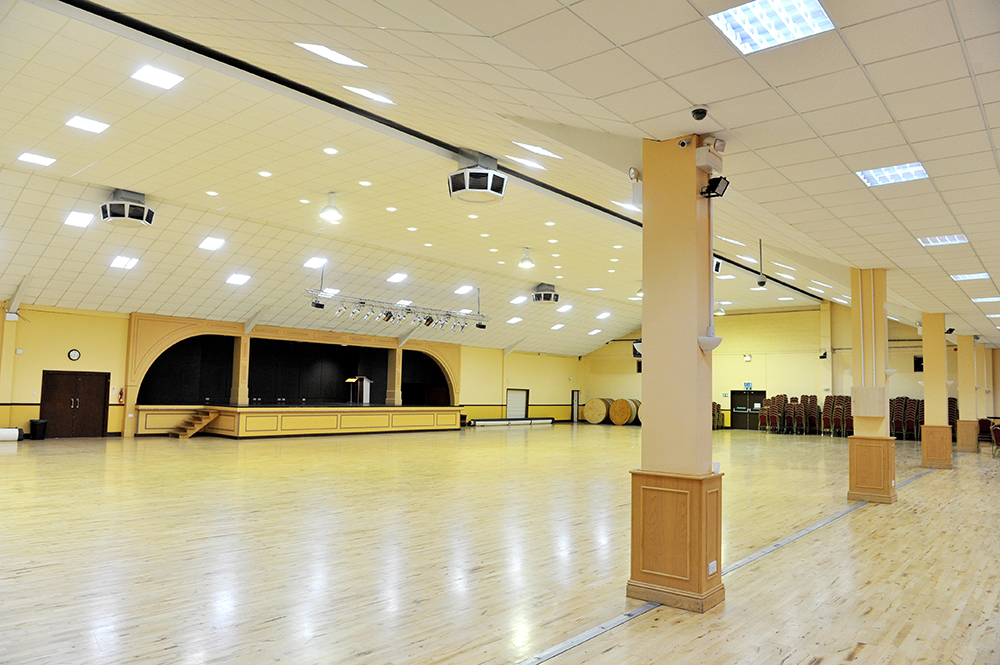 Perfect for conferences for up to 1000 delegates. Ample space with integral break out areas. Good natural daylight, air conditioning easy for exhibition goods.